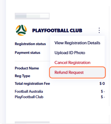 5. Click on the 3 dots of your registration and select 'Refund Request'
