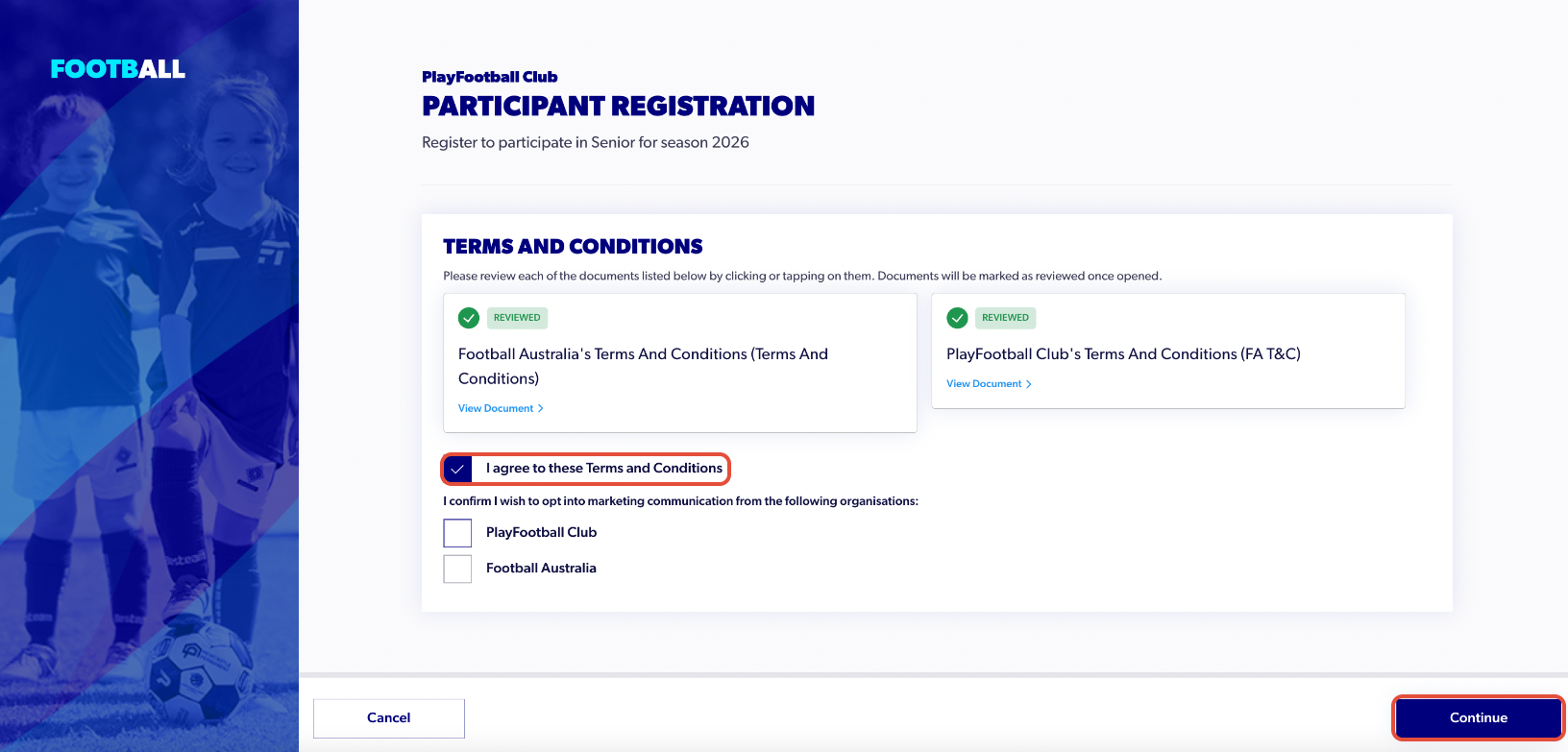Once an ITC request has been processed by the Member Federation and Football Australia, you will be prompted to pay for the registration. Following successful payment of the registration fees, the club will then approve your registration, and you will be all set to play in the upcoming season.