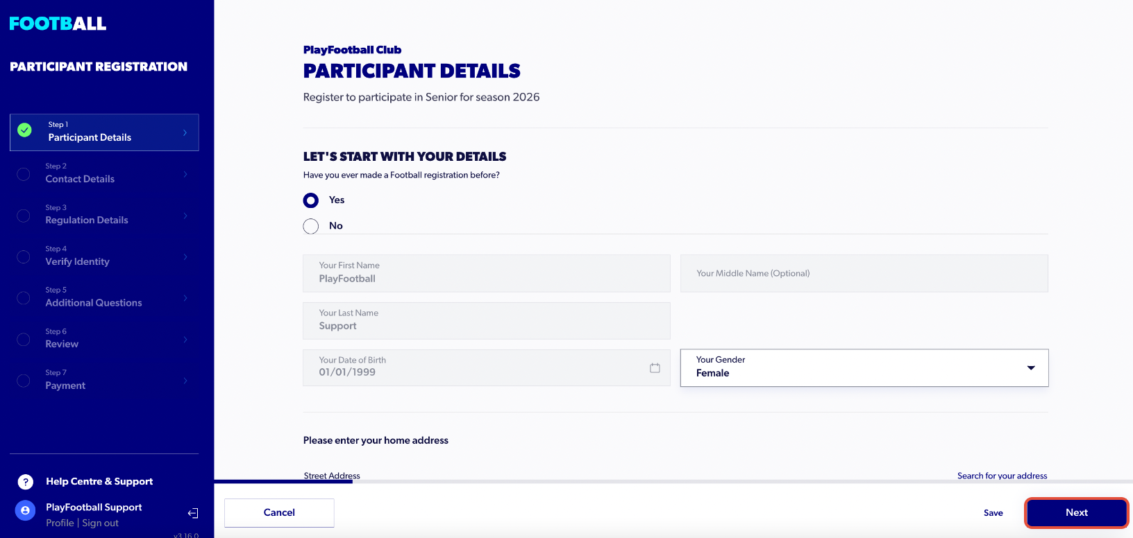 9. Fill out the participant details and select ‘Next’ at the bottom of the page.