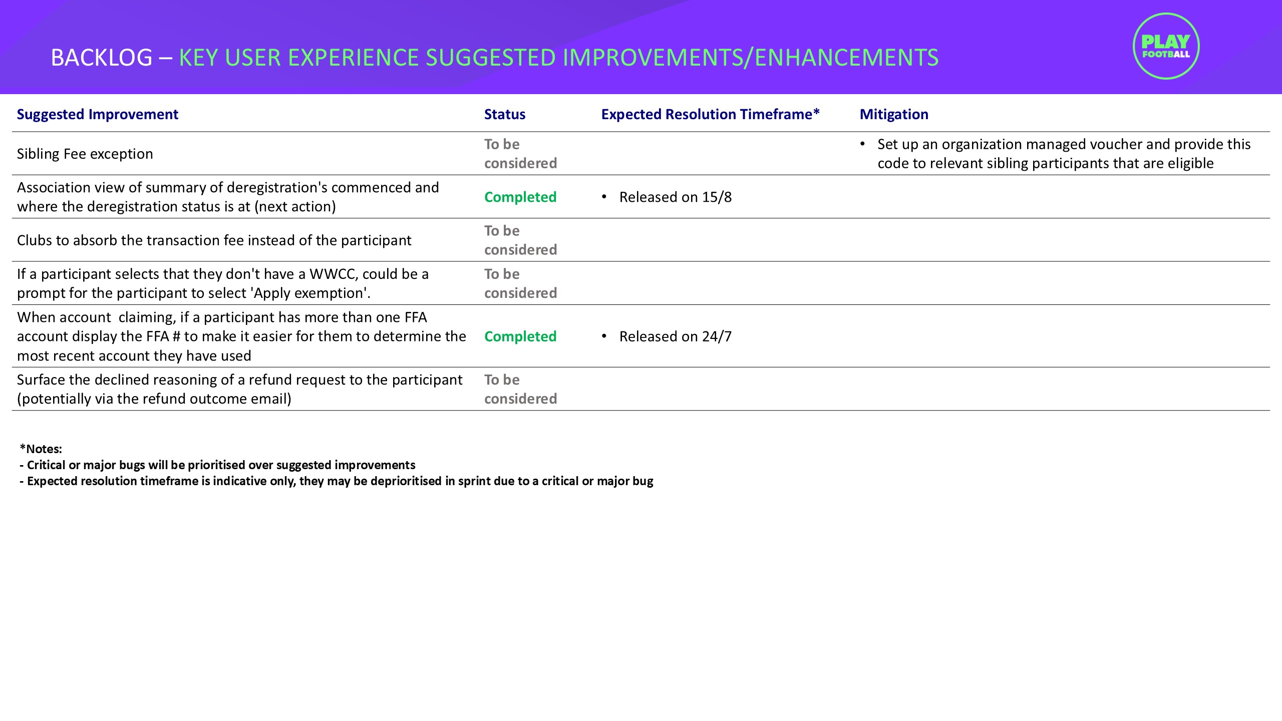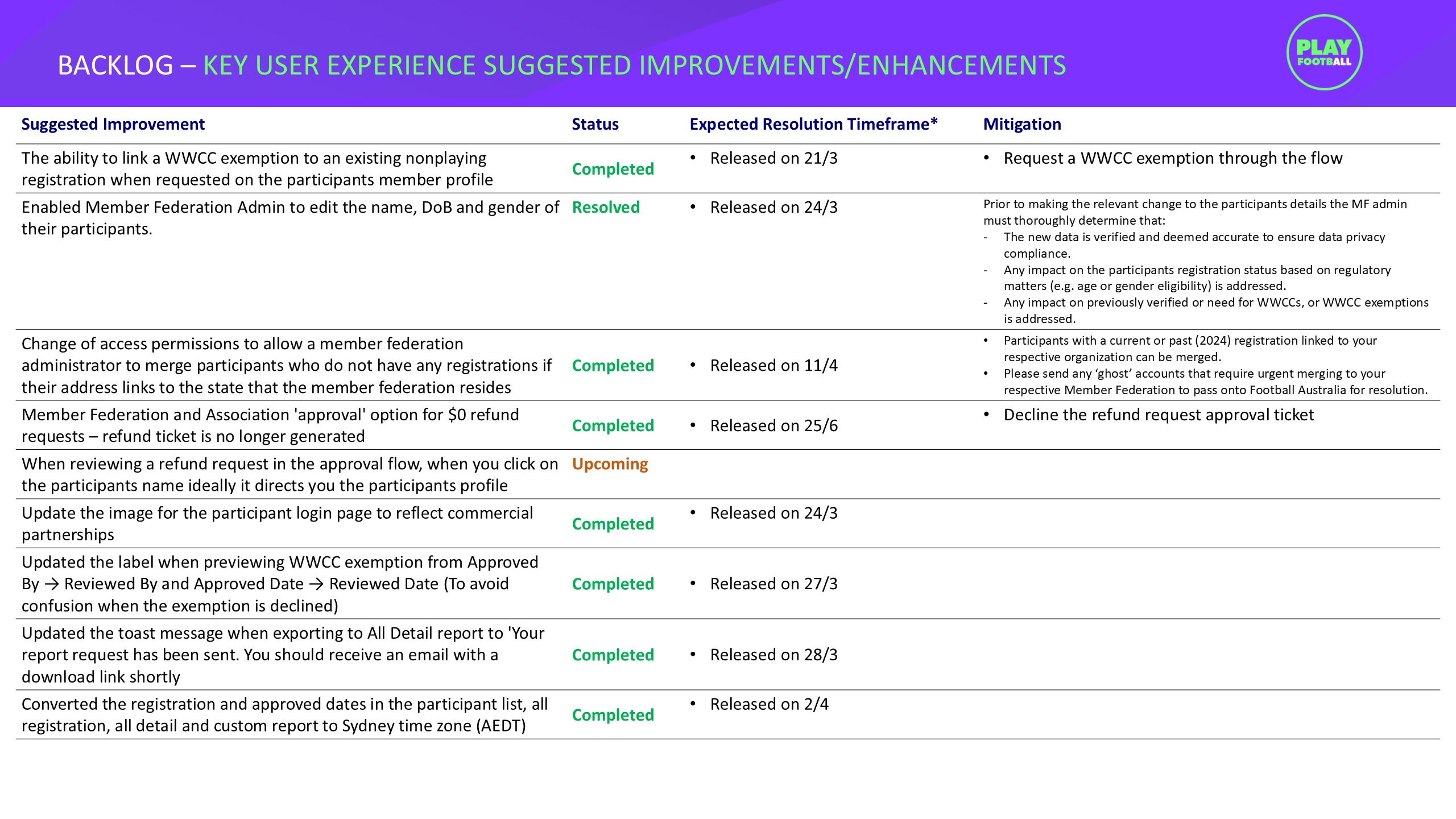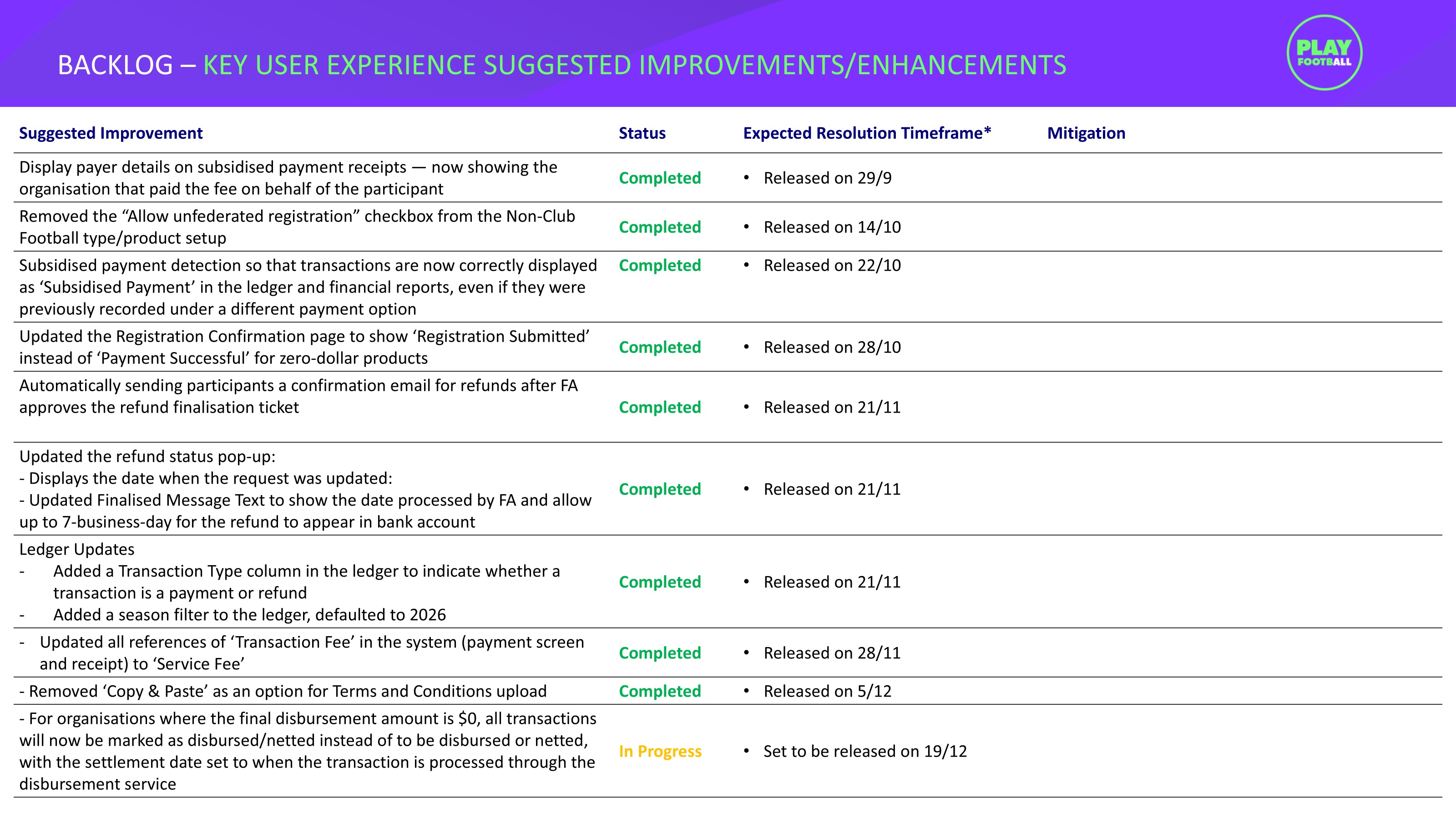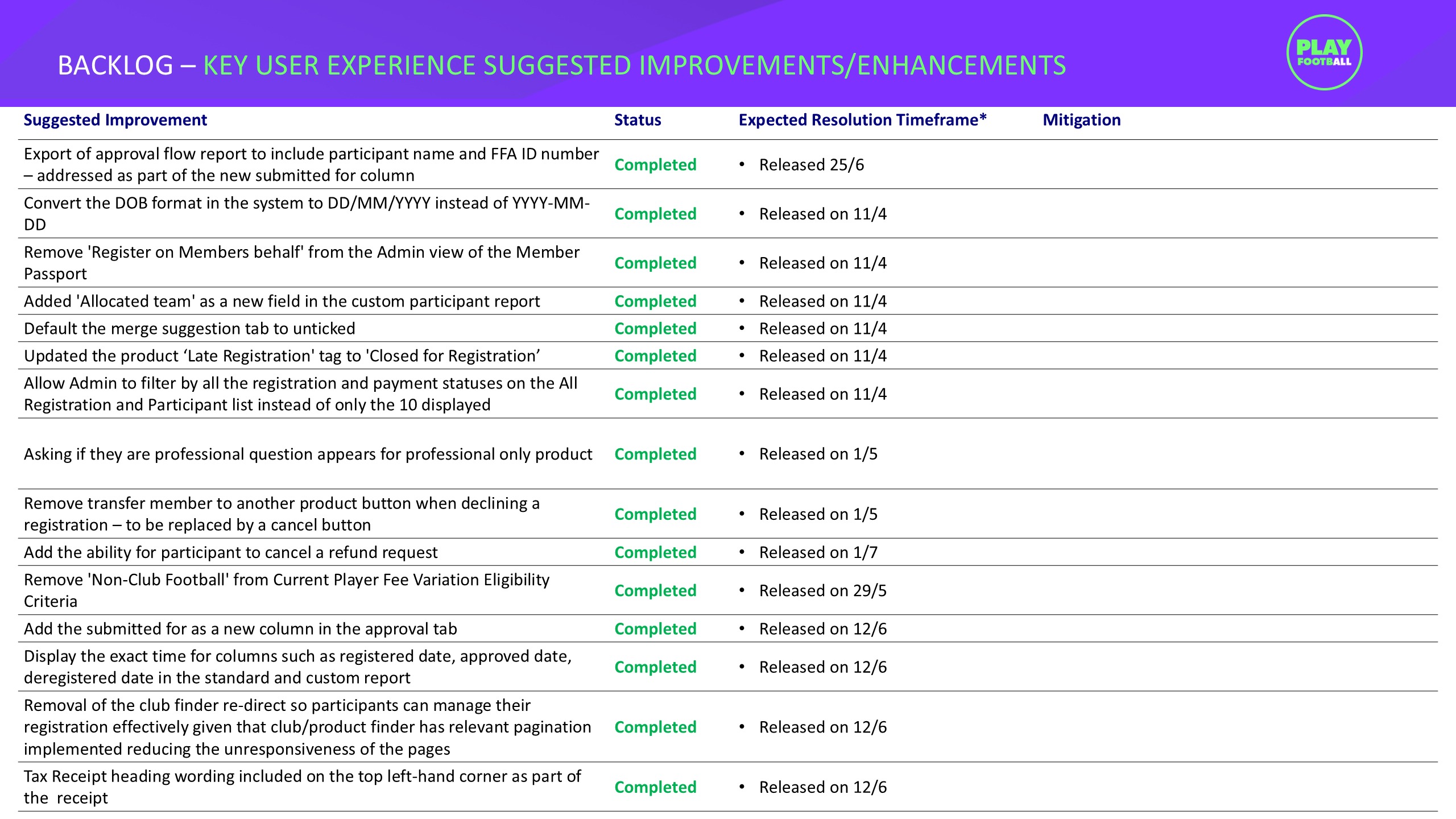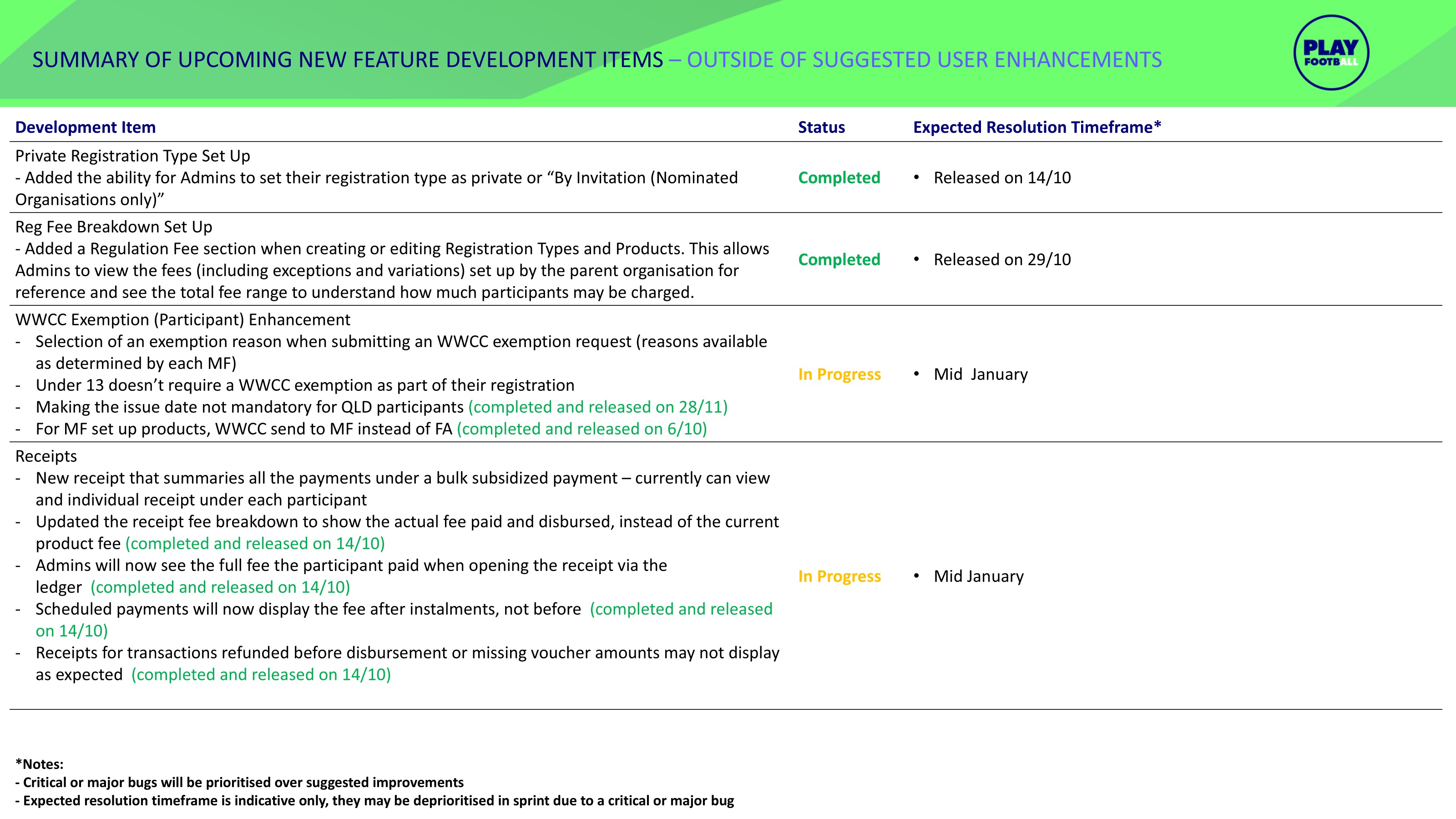 2025 Known Issues, Suggested User Enhancements & Upcoming Development Items Log