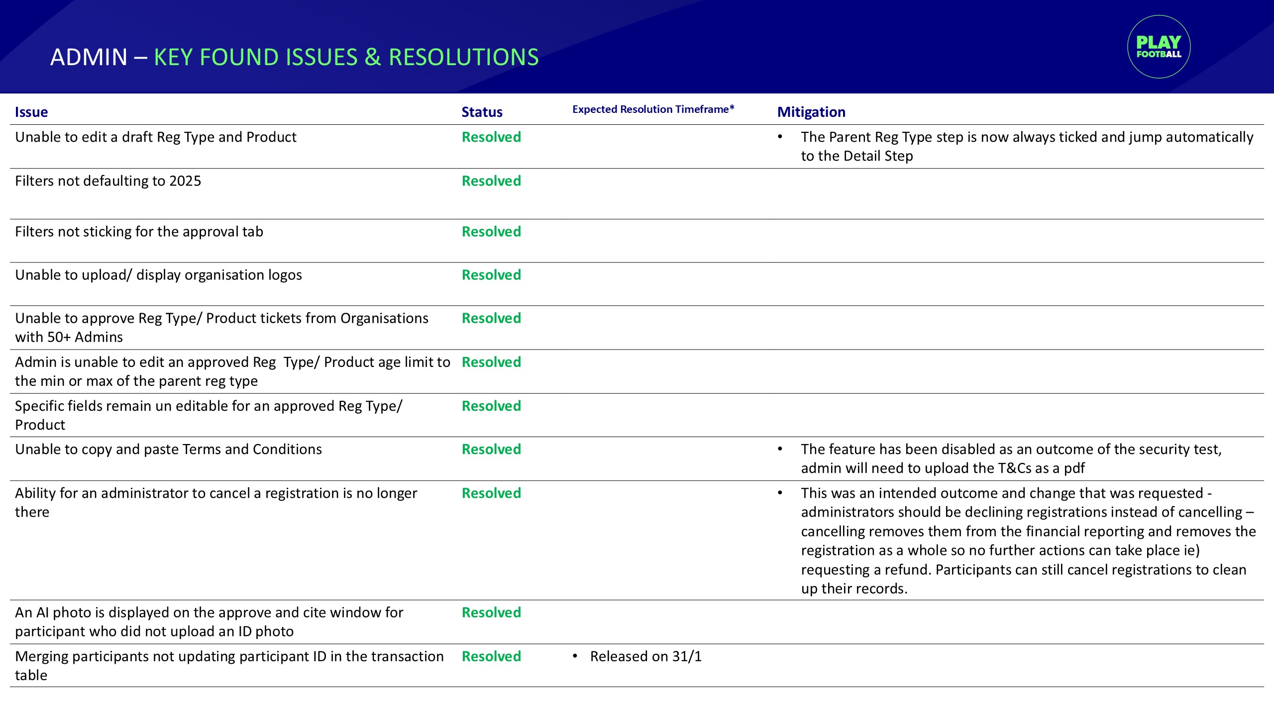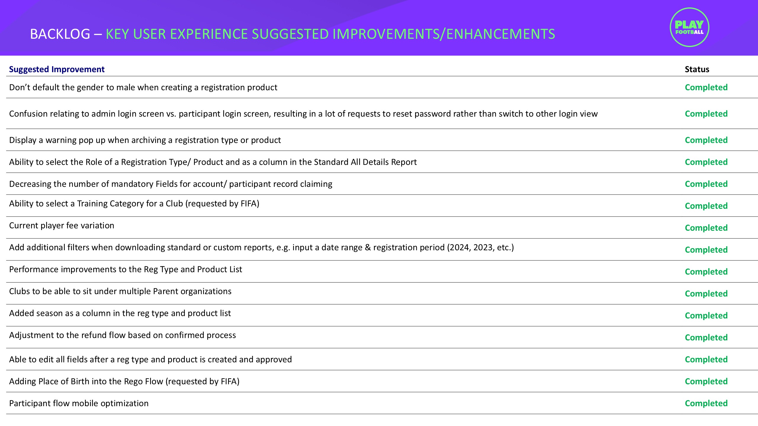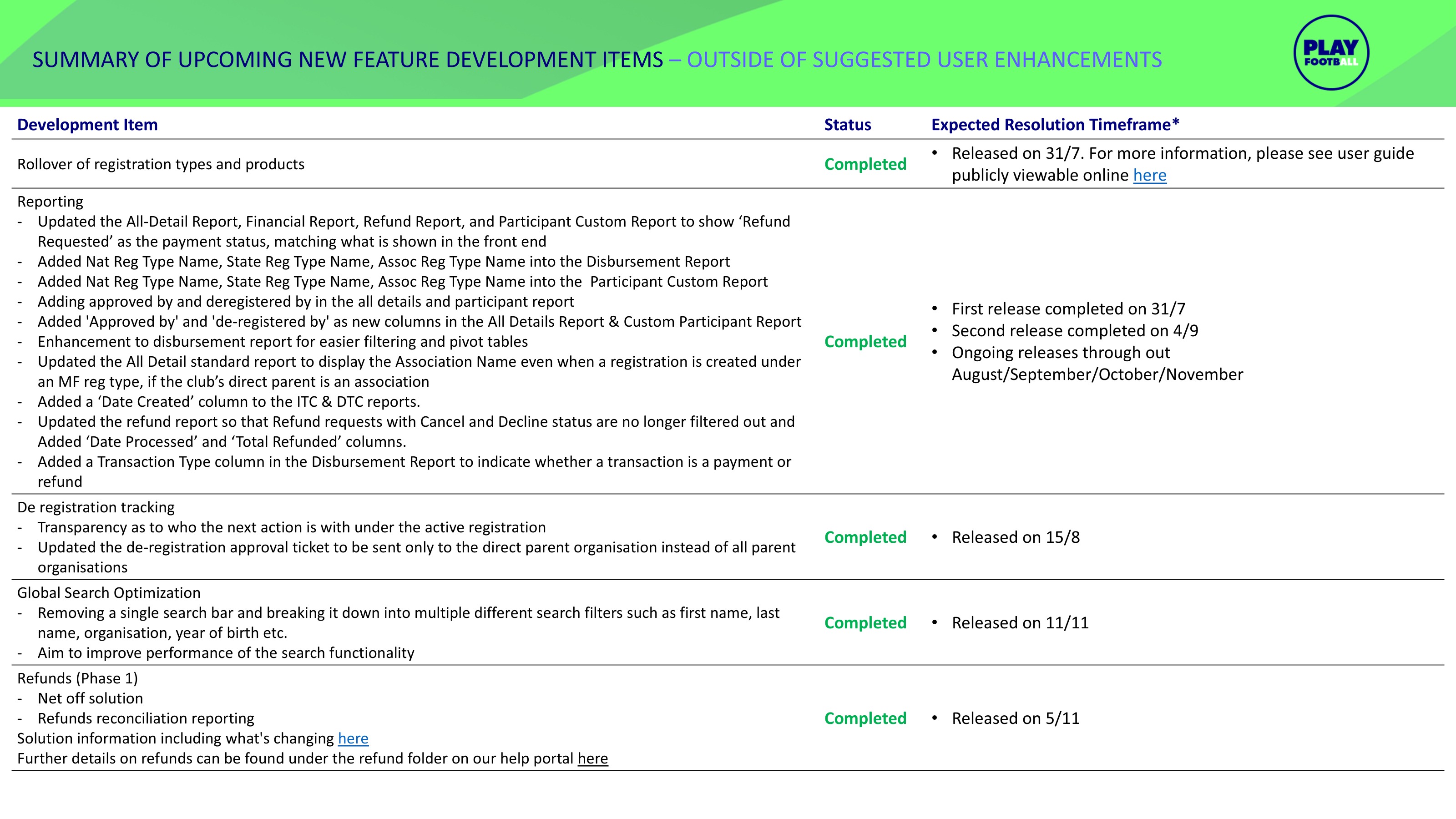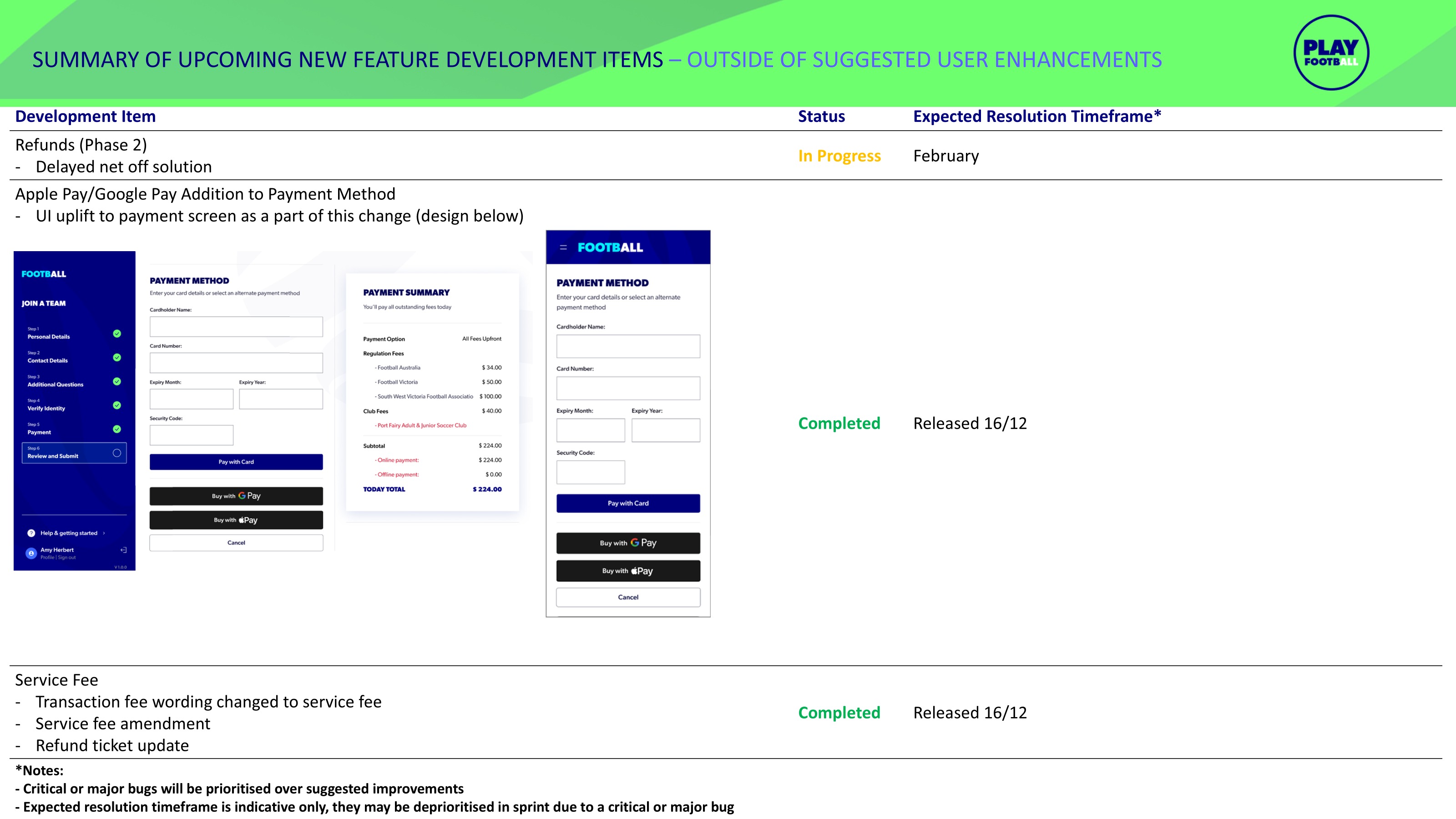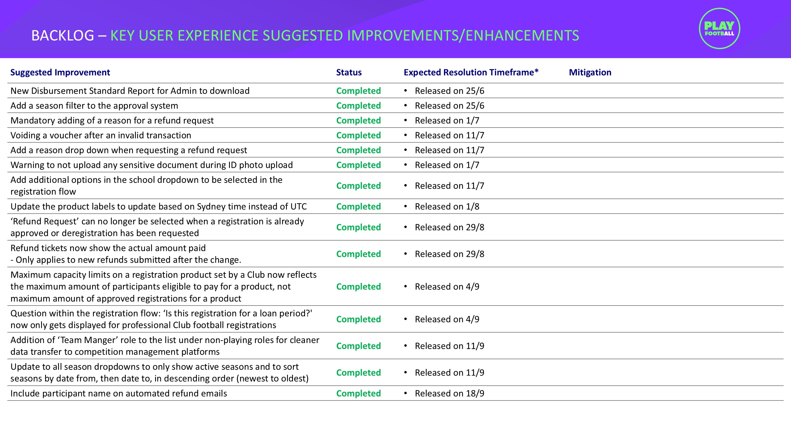 2025 Known Issues, Suggested User Enhancements & Upcoming Development Items Log