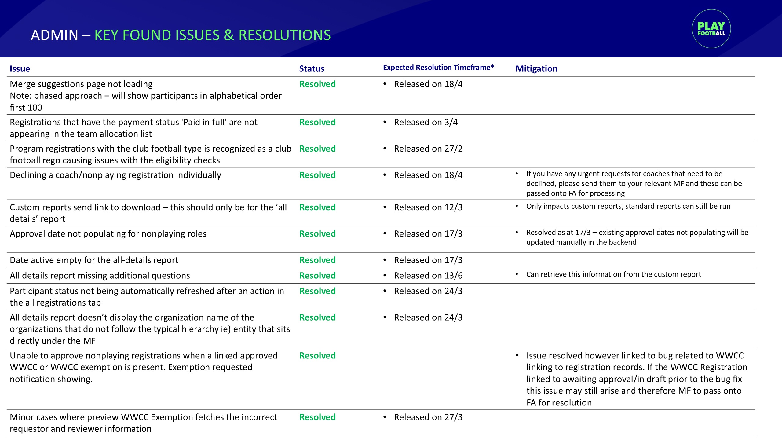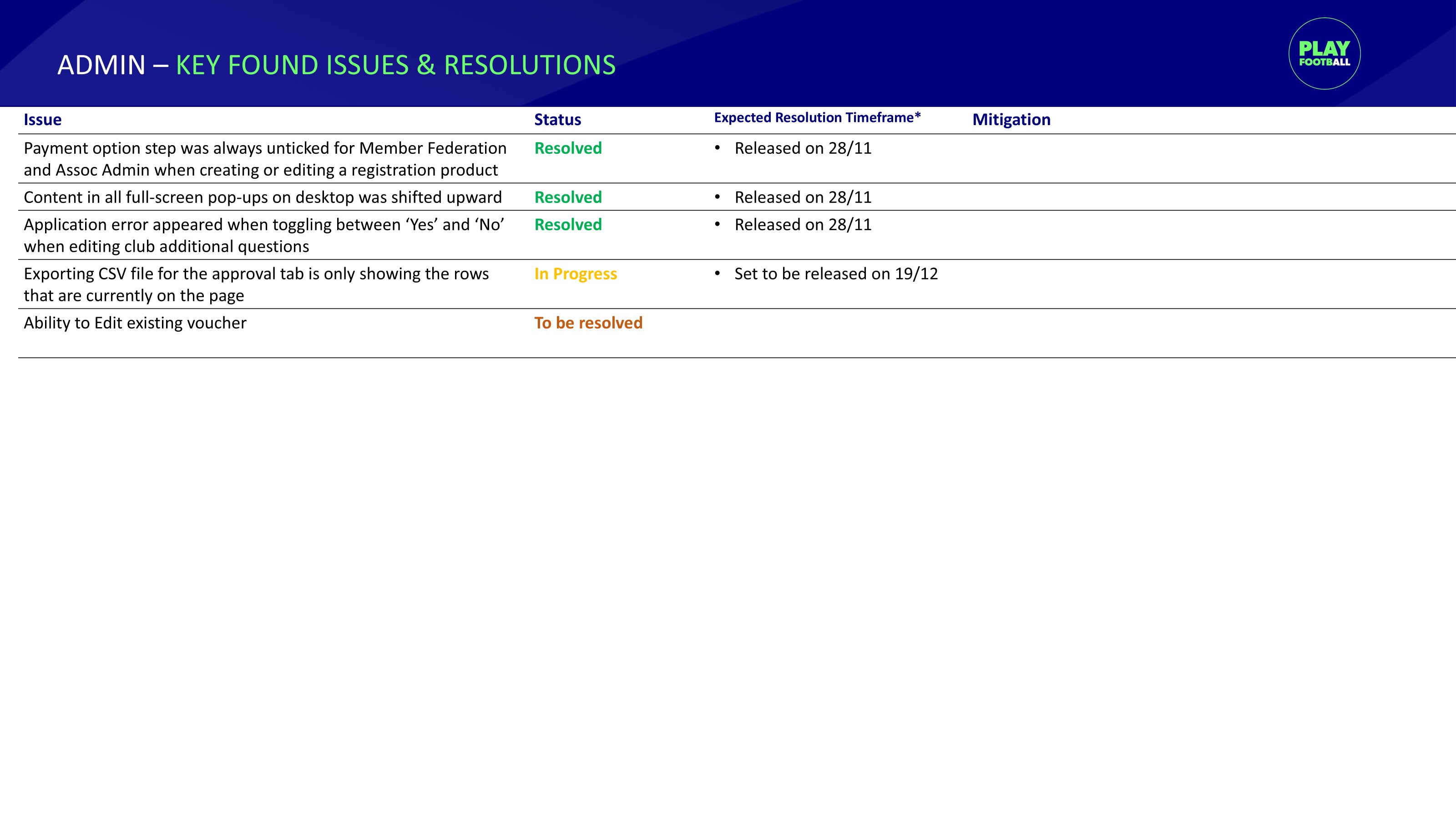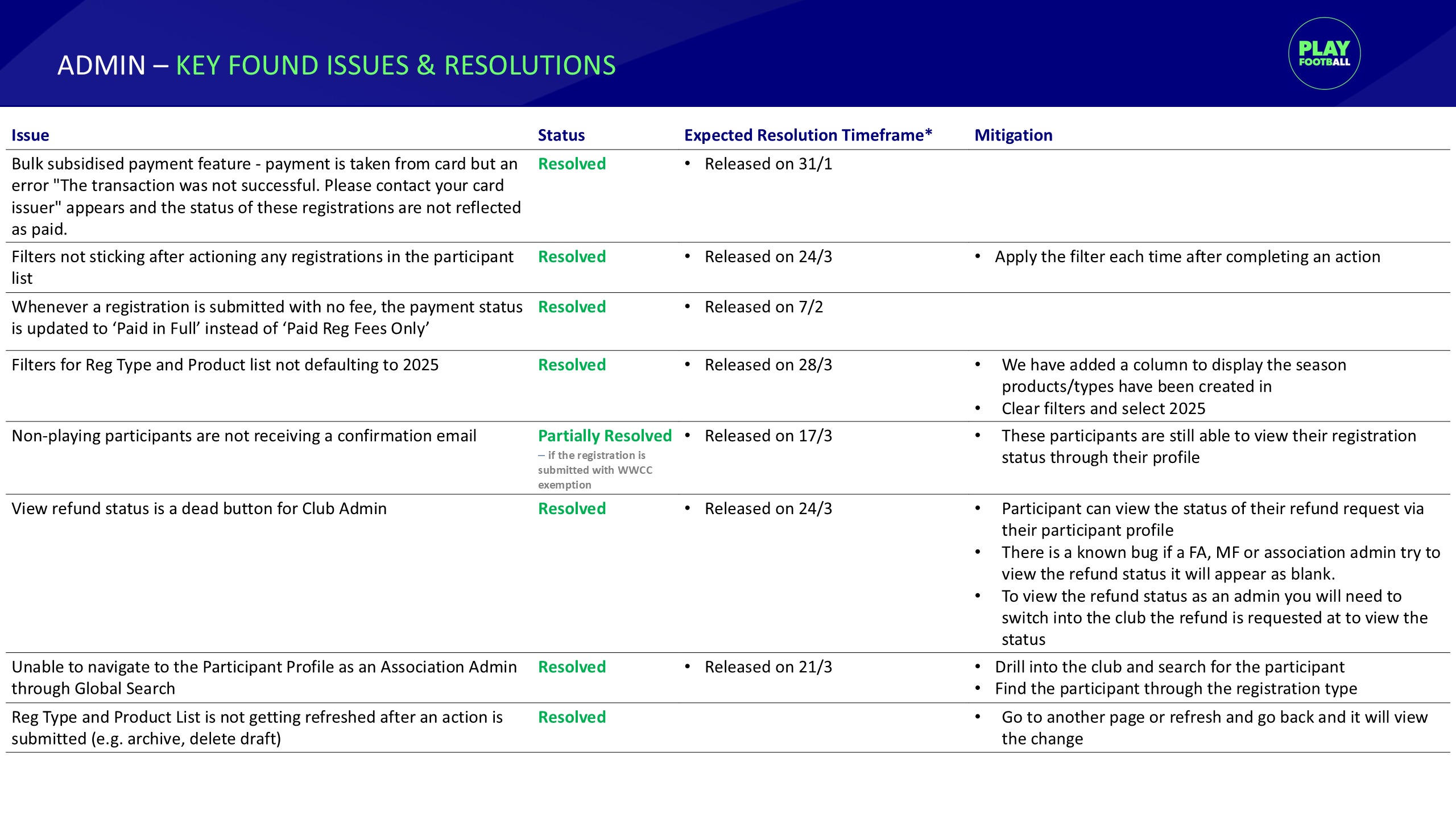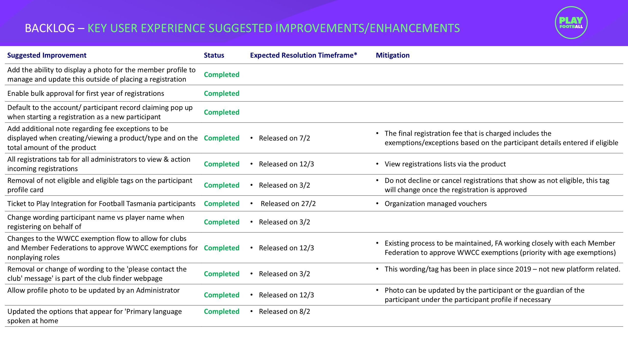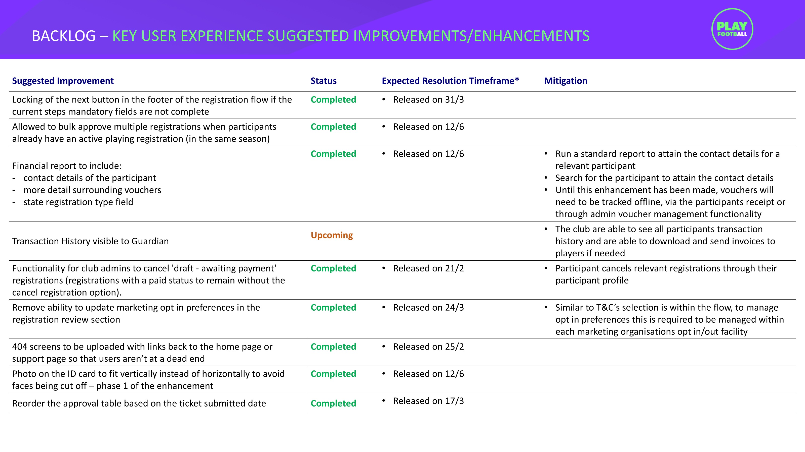 2025 Known Issues, Suggested User Enhancements & Upcoming Development Items Log